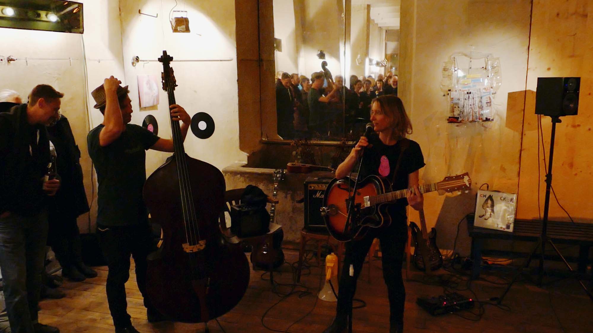 Auch in Berlin fanden, diesmal an zwei Abenden, Performances statt: Die fiktiven Cover wurden life, in improvisierten Sessions von jeweils unterschiedlichen Musikern vertont.